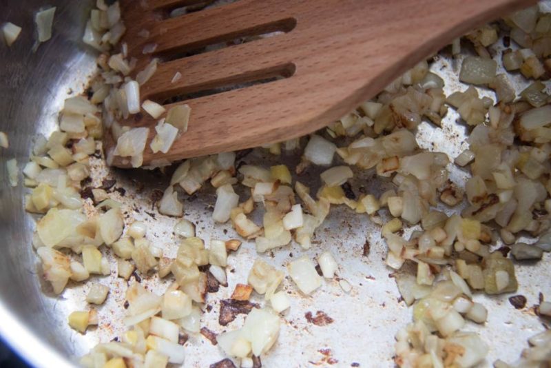 - Lass alles etwa 7-10 Minuten anbraten, bis die Zutaten einen gebräunten Rand bekommen und sich Röststoffe am Topfboden abgesetzt haben (Achtung, nicht anbrennen lassen 😉 )