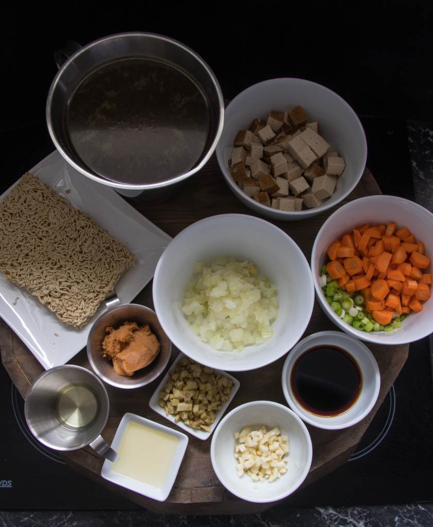 Ein paar exotische Zutaten sind nötig um den einzigartigen Geschmack hinzubekommen. Ganz wichtig ist die Miso-Paste, die findet man in jedem Asia-Laden. Außerdem findet man dort auch die Ramen-Nudeln. Ich verwende aber auch ganz oft Mie-Nudeln, denn die gibt es z.B. auch bei EDEKA oder REWE im Asia-Regal. Soja-Sauce ist mittlerweile auch überall problemlos zu bekommen, trotzdem sollte man darauf achten, eine ohne Zuckersatz zu kaufen, wie z.B. die von Kikkoman. Außerdem gibt es auch salzreduzierte Produkte, denn oftmals ist in Soja-Sauce zu viel Salz enthalten.