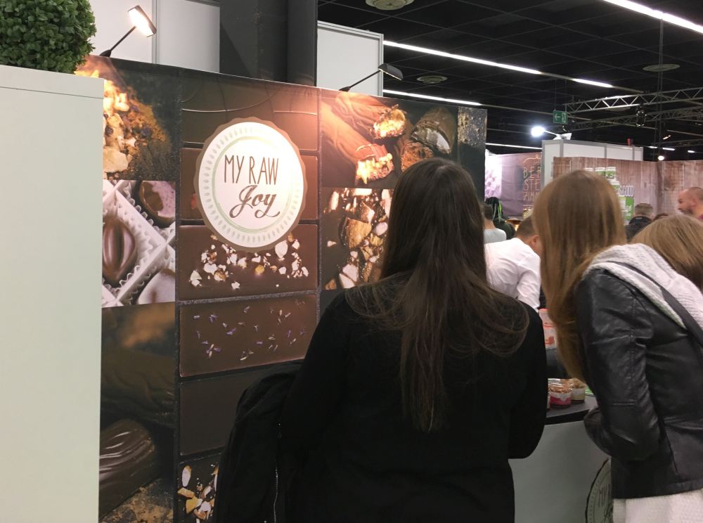 Fast hätte ich den Stand übersehen, wenn ich nicht bei “Das Bernsteinzimmer” vorbei geschaut hätte, die leider keine zuckerfreien Pralinen hatten, mich aber netterweise an My Raw Joy verwiesen haben – deren Produkte sind nämlich nur mit Kokosblütenzucker gesüßt. Denn ja, die kenne ich doch! Im Basic-Biomarkt habe ich schon alle verfügbaren Sorten an gefüllten Schokoriegeln gekauft, ausprobiert und für sehr sehr gut befunden! Schön, sie hier auf der Messe zu treffen 😉 Die “Choco Marbles” sind ganz neu und ich hab mich sofort in die schokoladenüberzogenen Kirschen verliebt. Hach, lecker! Mehr Infos, Verkaufsstellen und ein Onlineshop ist auf myrawjoy.com zu finden. In Köln habe ich schon viele My Raw Chocolate-Produkte im Basic-Supermarkt am Zülpicher Platz gefunden – wenn du also mal dort bist…;)