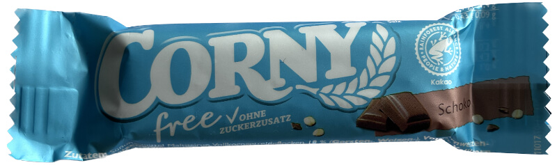 Der Corny free Schoko ist ohne Zuckerzusatz, jedoch bedeutet dies nicht, dass die Süße aus natürlichen Zutaten stammt. Der Schokoriegel ist mit künstlichem Süßstoff gesüßt.