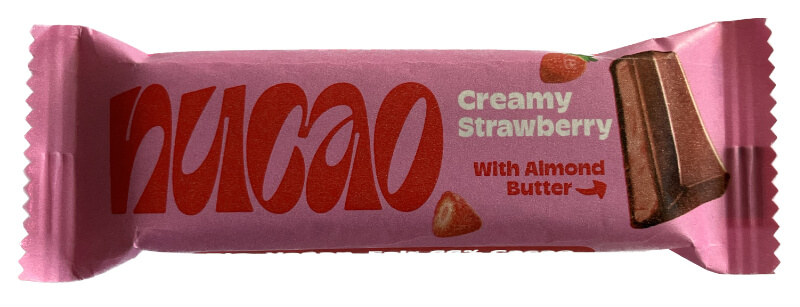 Kakaomasse, Rohrohrzucker, Kakaobutter, gemahlene Mandeln (15%), gemahlene Haselnüsse, Erdbeerpulver (2%), Himbeerpulver, Kakao 66% mind. im Schokoladenanteil