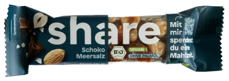 Mit jedem verkauften Riegel wird eine Mahlzeit gespendet.
