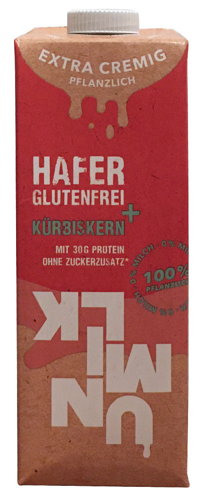 Die Unmilk Hafer Glutenfrei Kürbiskern ist fast identisch mit dem Original, nur das hier neben Erbsenprotein zusätzlich Kürbiskerne enthalten sind.